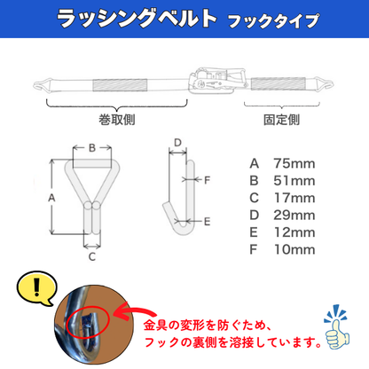 ラッシングベルト フックタイプ (Jフック)固定側1m+巻取側5m/7m ISO9001認証工場で製造